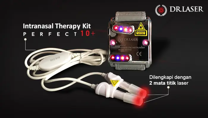 Intranasal Therapy Kit merupakan peralatan terapi kesehatan low level laser dengan jangkauan sinar laser 650nm yang digunakan bersamaan dengan Dr Laser untuk membantu penyembuhan migrain, vertigo, insomnia, keluhan hidung hingga melancarkan peredaran darah di otak. Intranasal ini digunakan di Hidung.