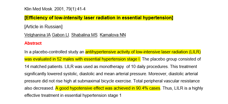 Teknologi Laser juga telah banyak digunakan di berbagai negara maju seperti Jerman, Eropa & USA sebagai terapi untuk memperbaiki kualitas darah & pemulihan pasca Stroke / Serangan Jantung. Pada awalnya, terapi low-level laser menggunakan mesin Laser yang berukuran besar, hanya tersedia di fasilitas kesehatan, dan memerlukan intervensi intravena melalui alat yang langsung dimasukkan ke dalam pembuluh darah .